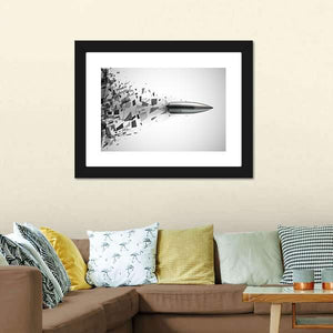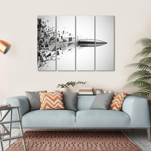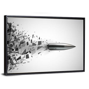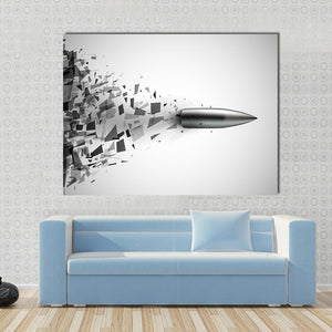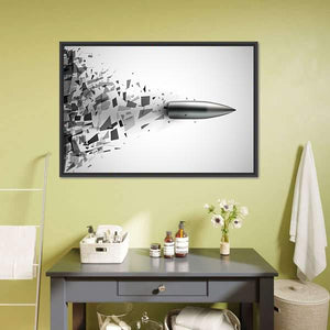 This abstract canvas art features a striking depiction of a bullet shattering glass, captured in dynamic motion. The interplay of black, white, and grey creates an intense atmosphere that draws the viewer in, making it a powerful addition to modern wall decor.