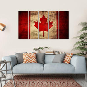 This canvas art features a vintage rendition of the Canadian flag, blending red, beige, and brown tones. The distressed texture adds a nostalgic touch, creating a patriotic atmosphere that celebrates Canada.