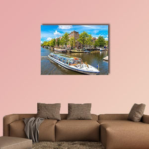 Capture the charm of Amsterdam with this realistic canvas art featuring a picturesque canal scene. The warm blues and greens evoke a sunny, relaxed atmosphere, making it a lovely focal point for your space.