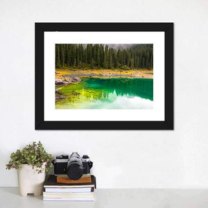 Discover the tranquil beauty of Carezza Lake with this stunning canvas art. Featuring a serene landscape of reflective waters surrounded by lush forests and majestic mountains, it invites a sense of peace and connection with nature.