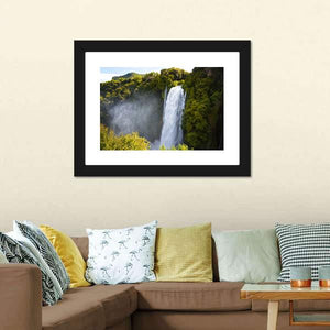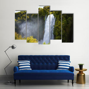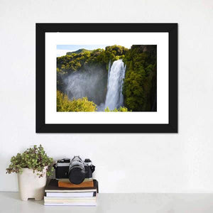 Marmore Waterfalls Canvas Wall Art shows a lush waterfall set in green forest with mist rising from the base, offering a calm yet powerful natural scene. Rendered in a realistic nature photography style, it brings a serene, nature‑inspired mood that works well in modern or nature‑themed home decor.