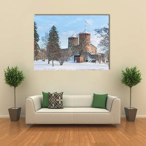 This serene canvas art captures Olavinlinna Castle surrounded by winter's beauty. Featuring a picturesque portrayal of snow-covered grounds and bare trees, it invites a sense of calm. Perfect for enhancing any landscape-themed decor.