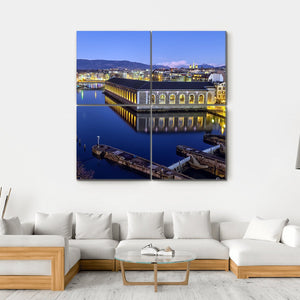 This serene canvas features a towering cathedral beside the Rhone River. With soft reflections of moonlight on the water, it brings a tranquil atmosphere to any space.