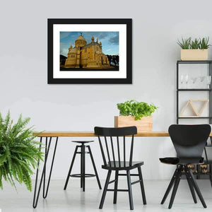 This canvas artwork features the majestic Cathedrale Notre Dame d'Afrique, showcasing striking architectural details like domes and arches. The rich palette of blue, grey, and golden tones adds an imposing charm, perfect for any room in need of inspiring decor.