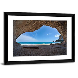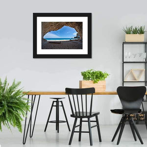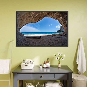 Experience the serene beauty of a beach framed by a cave entrance. This canvas art captures gentle waves and a sandy shore, inviting a natural touch to your space.