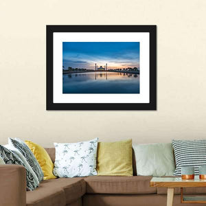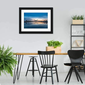 This canvas art captures the majestic Central Mosque of Songkhla, framed by a serene sunset and calm waters. The reflective composition showcases the beautiful dome and minarets, creating a peaceful atmosphere perfect for any space.