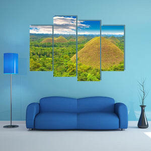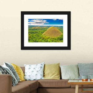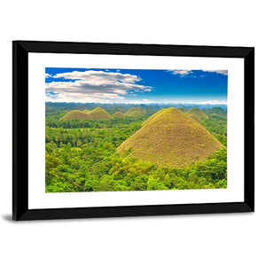 This landscape canvas art showcases the serene beauty of the Chocolate Hills, set against a tropical jungle and a vibrant sky. With realistic details and a majestic mood, it brings a touch of nature indoors.