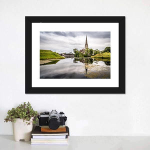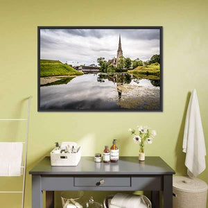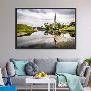 Gothic Church Reflection in Churchill Park Canvas Wall Art
