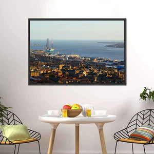 Coastal City Skyline with Offshore Rig Canvas Wall Art