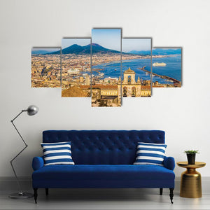 This beautiful canvas art captures the serene and picturesque city of Naples, with Mount Vesuvius looming majestically in the background. The high-angle view showcases the vibrant harbor and unique rooftop architecture, infusing any space with a grand, inviting atmosphere.