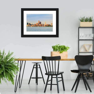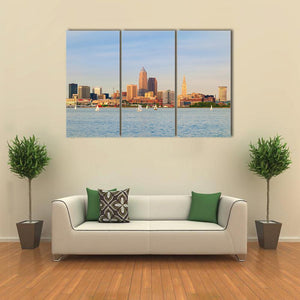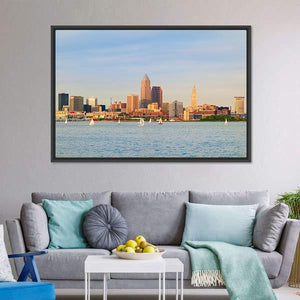 This canvas captures the serene beauty of Lake Erie, featuring a stunning city skyline with numerous sailboats gliding over the water. The calming palette of blues, tans, and whites evokes a peaceful atmosphere, making it a wonderful addition to your home decor.