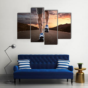 This canvas art captures a runner in motion on an asphalt road, framed by a dramatic sunset sky. The determined and adventurous vibe makes it a perfect addition for fitness enthusiasts looking to inspire any space.