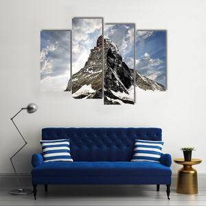 This majestic canvas features the iconic snow-capped Matterhorn mountain soaring under a dramatic sky. Sun rays pierce through the clouds, creating an awe-inspiring atmosphere that brings the beauty of nature into your space.
