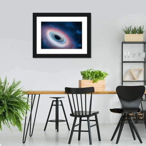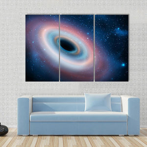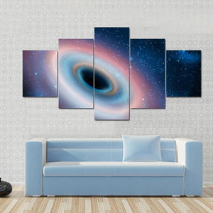 This abstract canvas portrays a captivating black hole surrounded by a galaxy of vibrant colors. Its mysterious and awe-inspiring design invites curiosity and wonder, making it a striking addition to any modern decor.