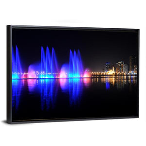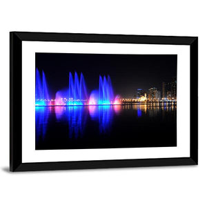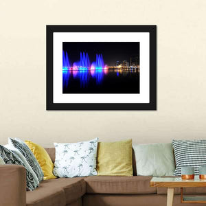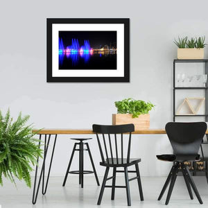 This piece captures the lively scene of dancing fountains against a vibrant city skyline. With a palette of blue, pink, and yellow, it brings a modern touch to your wall decor.