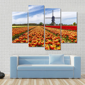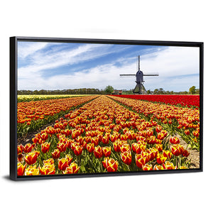 Transport your space with this captivating canvas print featuring vibrant tulip fields and a traditional Dutch windmill. This striking artwork combines rich, saturated colors with timeless pastoral charm, creating a focal point that draws the eye and elevates any room's aesthetic. Perfect for those who appreciate fine art and authentic European landscapes, this piece brings warmth, character, and visual interest to your walls. A sophisticated choice for living rooms, bedrooms, or galleries seeking to make a memorable design statement.