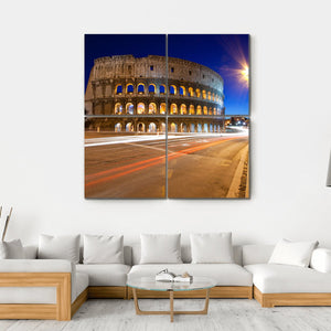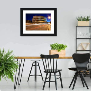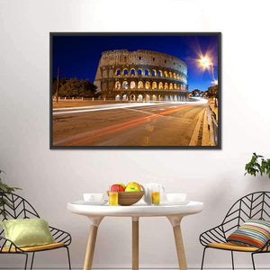 Experience the dynamic charm of the Colosseum at night with this striking canvas wall art. Illuminated arches and streaking light trails capture the iconic spirit of Rome, creating a vibrant atmosphere for any space.