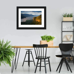 This captivating canvas art depicts the majestic Columbia River and its surrounding landscape, with magnificent cliffs and sprawling forests. The artwork's serene mood and realistic style invite a feeling of vastness, making it a lovely addition to any nature-inspired décor.