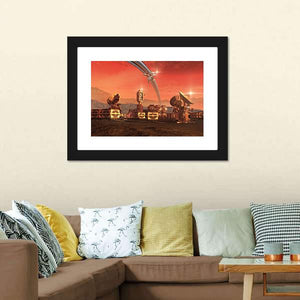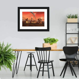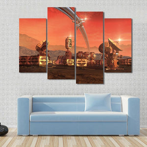 This vibrant canvas features a futuristic Mars colony, complete with satellite dishes and domed structures against a striking red sky. Its adventurous and desolate landscape captures the essence of space exploration.