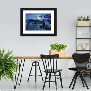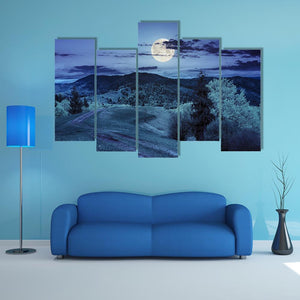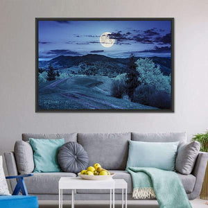 Moonlit Mountain Road Through Forest Canvas Wall Art