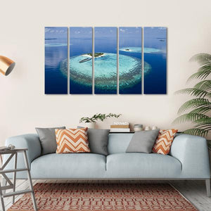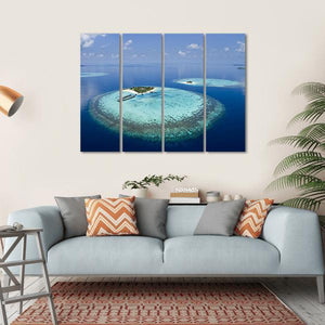Experience the tranquility of the Maldives with this canvas wall art featuring breathtaking aerial views of coral atolls and overwater bungalows. The serene palette of blue, teal, and white creates a peaceful atmosphere, making it a perfect addition to any art collection or coastal-themed décor.