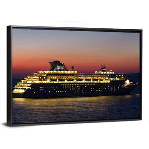 This canvas artwork captures a majestic cruise ship at night, its illuminated windows reflecting a serene atmosphere. The blend of orange, blue, and yellow creates a calming mood perfect for enhancing your living space.