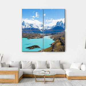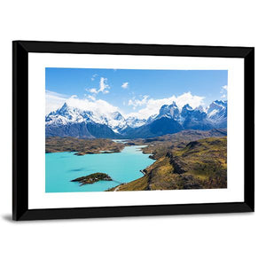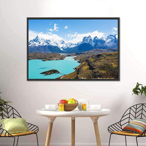 Capture the serene beauty of Cuernos Del Paine with this breathtaking canvas wall art. Featuring majestic mountains, a tranquil turquoise lake, and a clear blue sky, this piece invites awe with its natural splendor. Perfect for adding a touch of nature to your home decor.