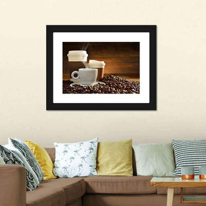 This canvas art features inviting coffee cups and textured coffee beans, creating a warm and energizing atmosphere. Ideal for adding a rustic touch to your kitchen or café space, it beautifully captures the essence of coffee culture.