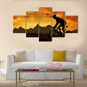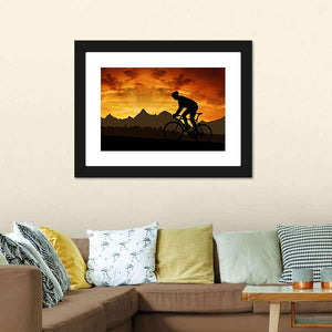 Cyclist Silhouette at Sunset Over Mountains Canvas Wall Art