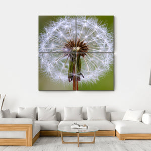 This beautiful canvas art features a close-up of a delicate dandelion seed head. Its soft colors of white, brown, and green create a serene atmosphere, perfect for enhancing your space with a touch of nature.