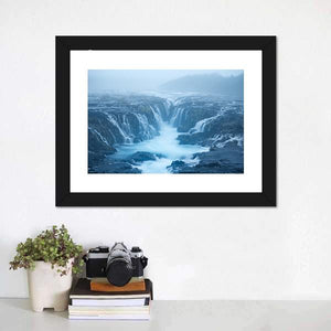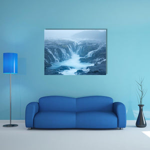 Bruarfoss Waterfall Canvas depicts the misty river, rocks and falls at Bruarfoss in Iceland with a long-exposure water effect. The scene feels serene and ethereal while still carrying a quiet, powerful energy, making it a calm focal point for modern homes and nature-themed rooms.