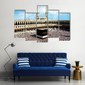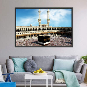 Capture the grandeur of the Kaaba and Masjid al-Haram with this beautiful canvas wall art. The high perspective and sweeping view create a spiritual atmosphere, making it a perfect addition to any space that values faith and cultural significance.