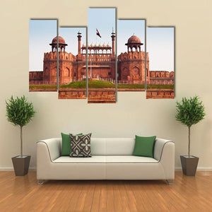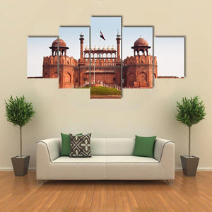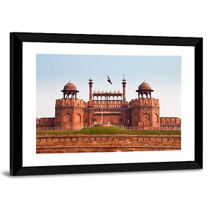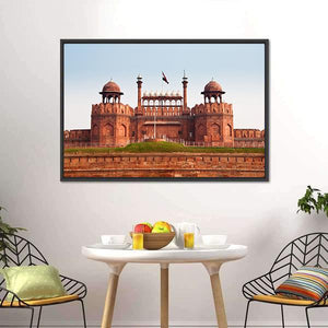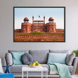 This canvas artwork features a majestic view of the Red Fort in Delhi, capturing its grand stone architecture and the Indian flag flying proudly. The realistic composition is enhanced by a vibrant palette of red, white, blue, and green, making it a striking addition to your home decor.