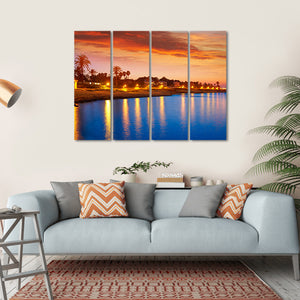 Bring a touch of serenity to your space with the Denia Sunset Skyline Canvas Wall Art. This piece beautifully captures a tranquil beach scene, featuring warm colors of orange, yellow, and blue, alongside palm trees and the calming ocean. With its realistic style, it’s perfect for enhancing any room's decor.