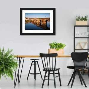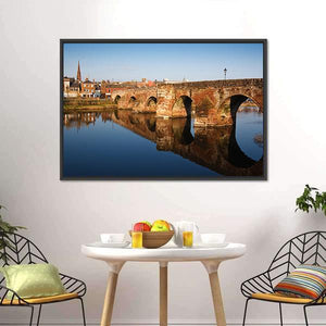 This canvas features a serene depiction of the historic Devorgilla Bridge over a tranquil river, enhanced by a beautiful reflection. The artwork combines a palette of blue, brown, and white, making it a calming addition to any décor.