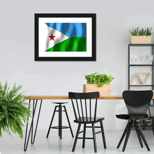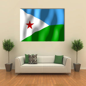 Celebrate the vibrant spirit of Djibouti with this bold flag canvas art. Featuring a graphic style, this piece captures the motion of a waving flag adorned with a red star, perfect for adding a patriotic touch to any space.