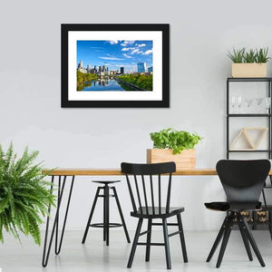 This serene canvas art captures the tranquil beauty of the Schuylkill River and Philadelphia's skyline. Featuring a photorealistic view of vibrant blue skies, lush trees, and reflective buildings, it's a perfect addition for urban-inspired décor.