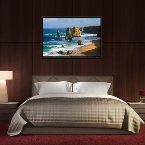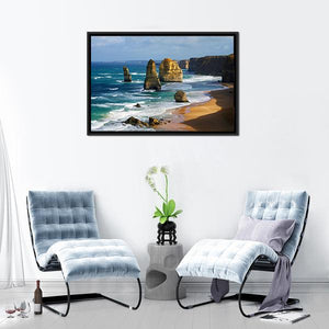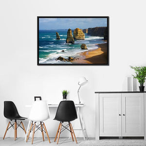 Bring the beauty of the coast into your home with this canvas wall art featuring the iconic 12 Apostles. Depicting majestic coastal cliffs and gentle ocean waves, this piece creates a serene atmosphere filled with natural colors like blue and tan that enhance any space.