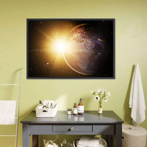 Earth In Cosmos & Bright Sun Vertical Canvas Wall Art