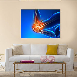 This canvas art features a close-up of elbow anatomy, highlighting human arm bones with a medical and scientific vibe. The glowing orange areas signify pain or inflammation, adding depth to the illustration.