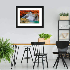 Bring the serenity of nature indoors with the Erwan Waterfall Canvas Wall Art. This vibrant piece features a tranquil waterfall surrounded by vivid orange foliage and lush greenery, creating a harmonious atmosphere. It's an ideal addition to any room looking for a touch of natural beauty.