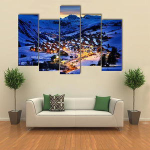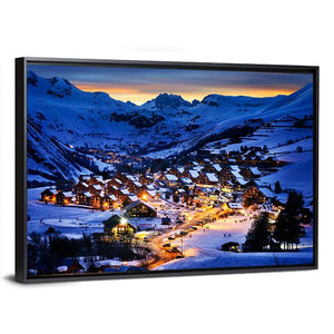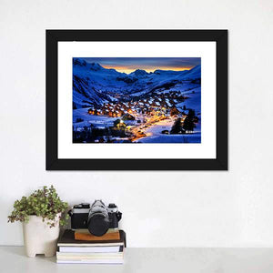 This canvas art captures a serene winter evening in a charming mountain village. The cozy scene features snow-covered roofs and glowing windows, inviting a sense of peace into your space.