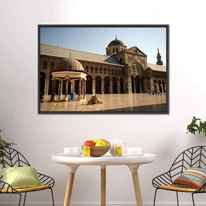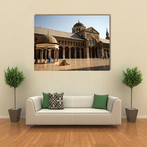 Umayyad Mosque Courtyard with Ornate Facade Canvas Wall Art