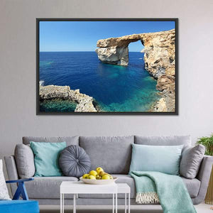 This captivating canvas features the Azure Window, a natural rock arch in Malta, surrounded by the deep blue ocean and clear turquoise waters. Its serene and majestic scene invites a sense of tranquility into any space.