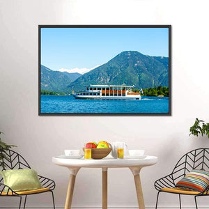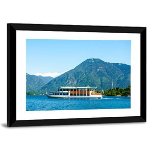 This stunning canvas art captures the serene beauty of Tegernsee Lake in Germany, featuring a picturesque scene with a charming passenger boat gliding across the calm waters. Framed by lush, forested mountains and a bright, clear sky, it brings a peaceful and inviting atmosphere to any space.