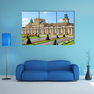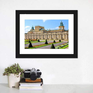 This canvas artwork captures the grandeur of Wilanow Palace and its beautiful gardens. Featuring symmetrical compositions of topiary trees and domed towers, it brings a touch of elegance to any space.