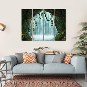 Experience the serenity of nature with this captivating artwork featuring a waterfall framed by a cave entrance. Vines and mossy rocks enhance the mystical atmosphere, creating a tranquil escape in any space.