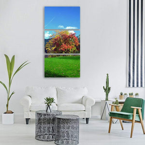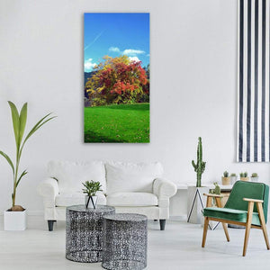 Autumn Field with Tree and Scattered Leaves Vertical Canvas Wall Art