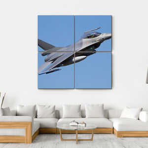 Capture the power of flight with this fighter jet canvas wall art. Its dynamic composition showcases a military aircraft soaring through a clear blue sky, evoking feelings of speed and strength.