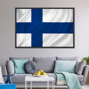 This canvas depicts the flag of Finland in a balanced, symmetrical design. The blue-and-white palette and modern, minimalist style create a clean, crisp, patriotic atmosphere that suits homes and modern interiors.